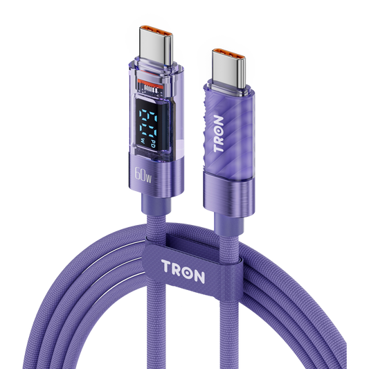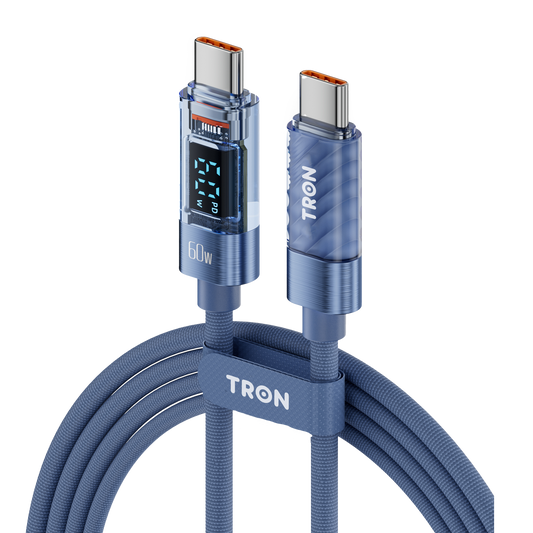 60W Transparent USB-C to USB-C Charging Cable with Digital Display | 5FT - TR94