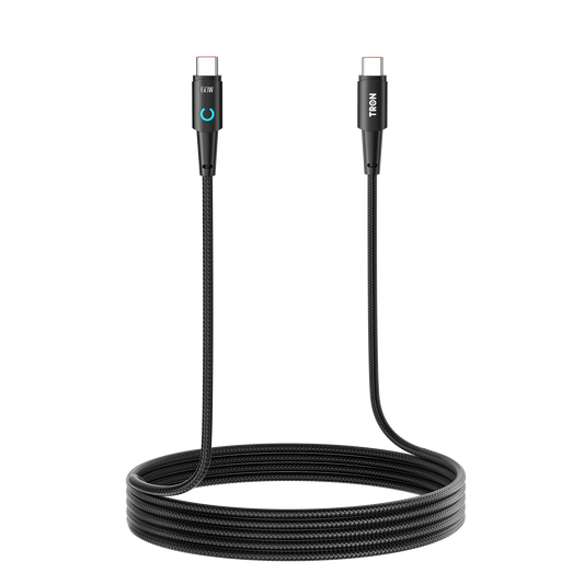 USB C to C Braided Charger Cable - Black, 6FT, with LED Light-TR10
