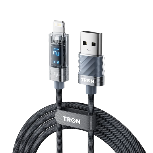2.4 A USB-A to Lightning Transparent Charging Cable With Digital Display | 5FT - TR99