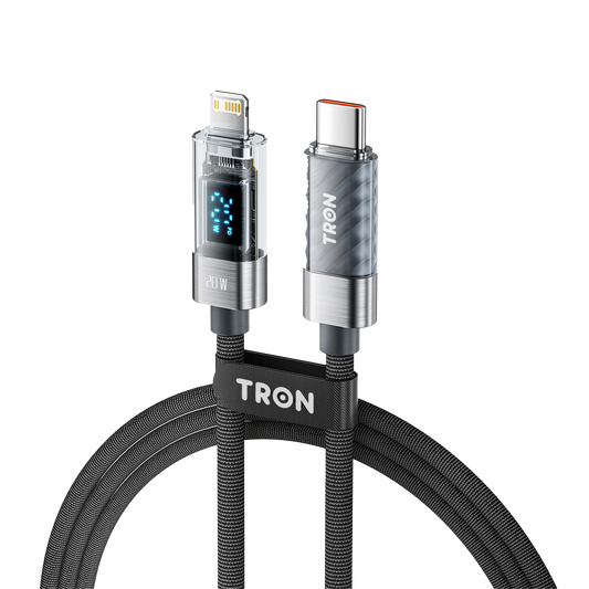 20W Transparent USB-C to Lightning Charging Cable with Digital Display | 5FT - TR97