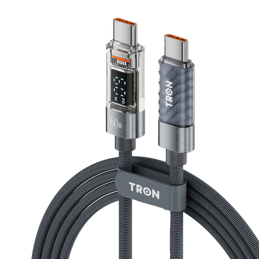 60W Transparent USB-C to USB-C Charging Cable with Digital Display | 5FT - TR95
