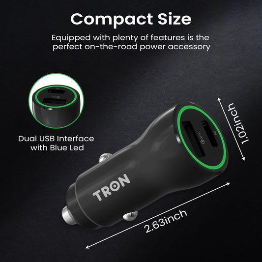 36W Car Charger, 2-Port USB-A + USB-C with LED Light-TR5