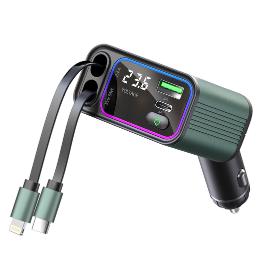 65W 4-in-1 Car Charger, 2-Port USB-C with LED Light-TR32