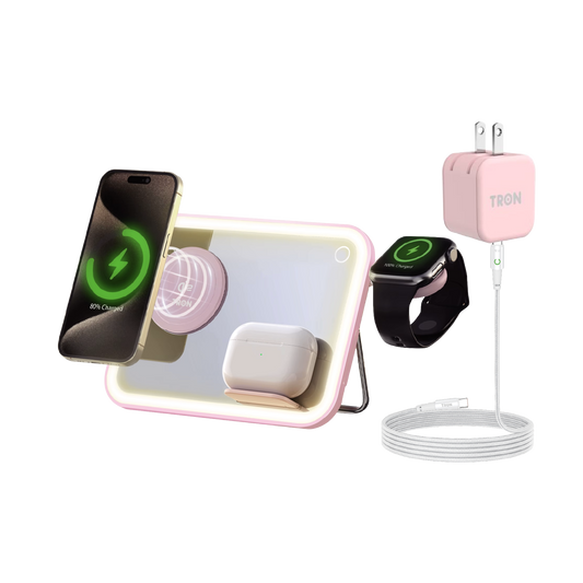 3-in-1 Wireless Qi2 Charger Mirror with 25W Power Adapter and with LED Light & 6FT LED Cable-TR18